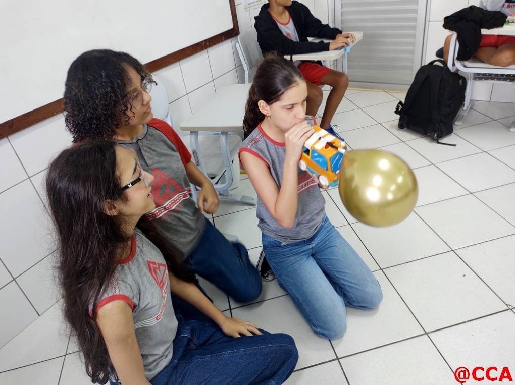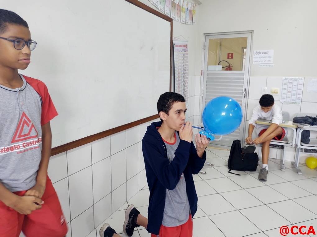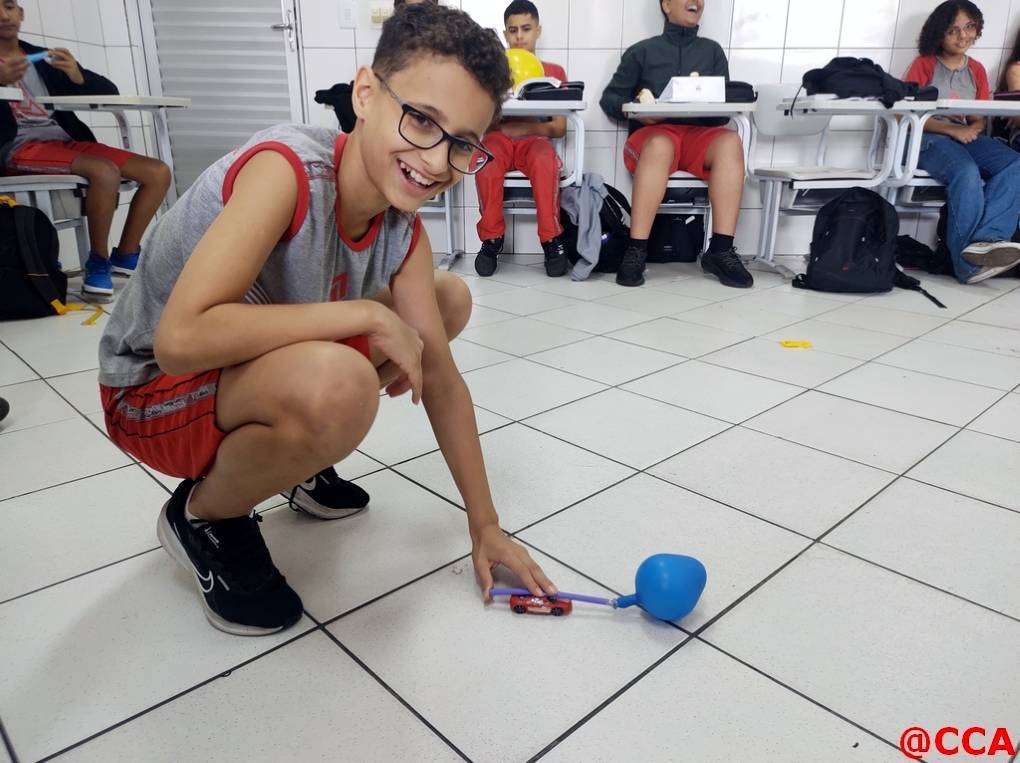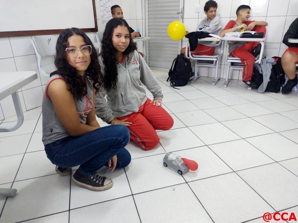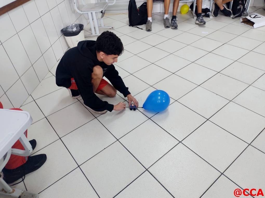Eles foram desafiados a construírem um carrinho movido a jato de ar, utilizando o princípio de ação e reação da 3° lei de Newton.