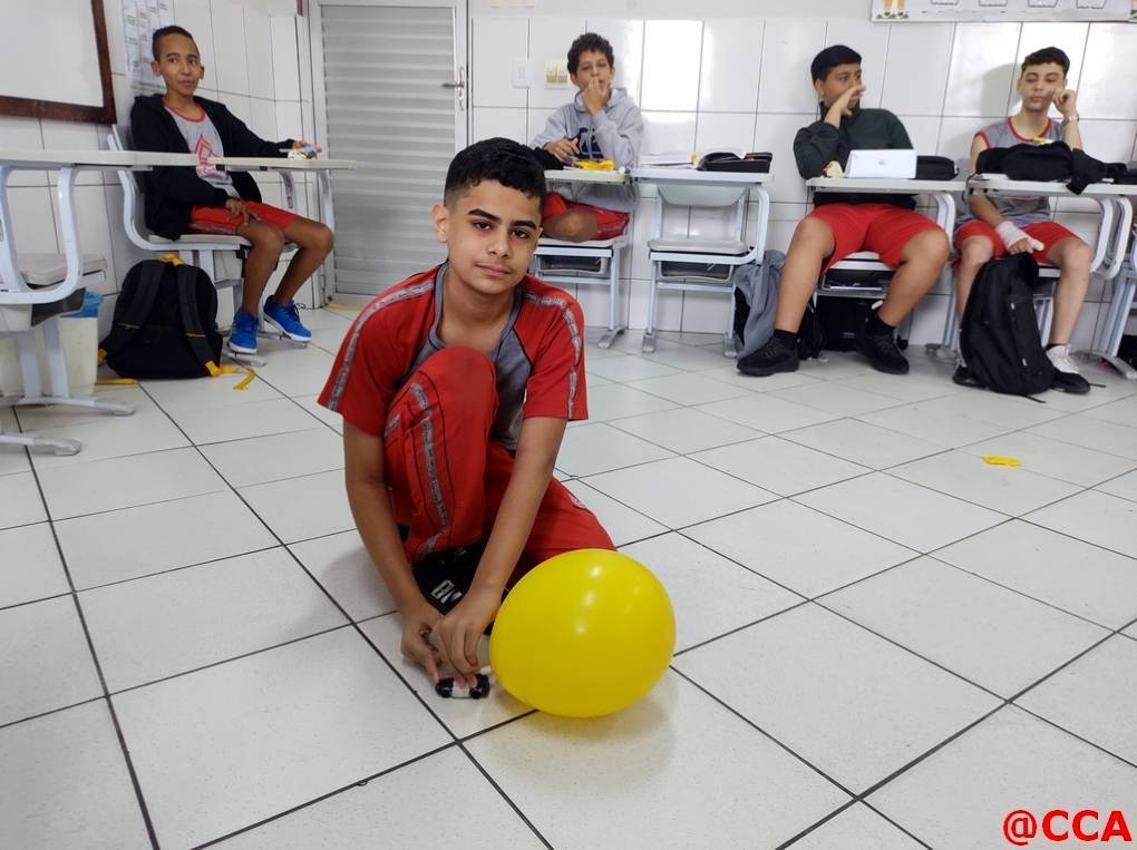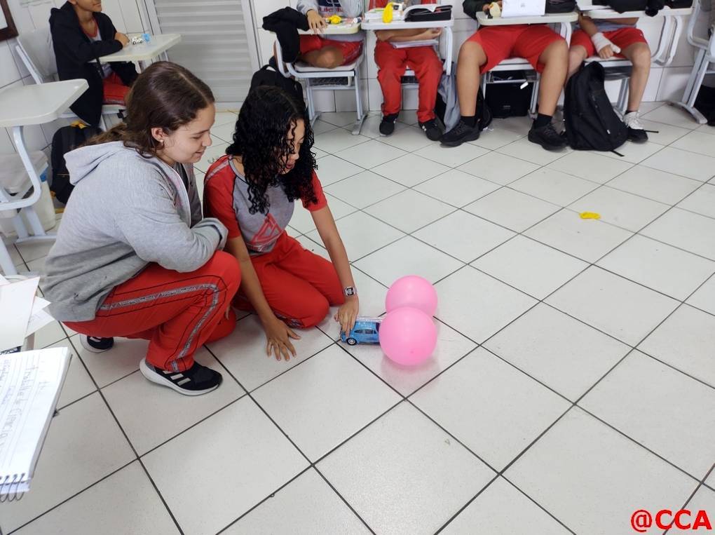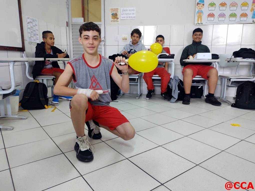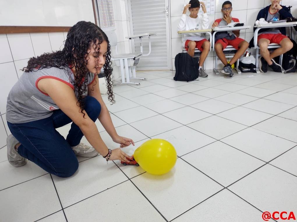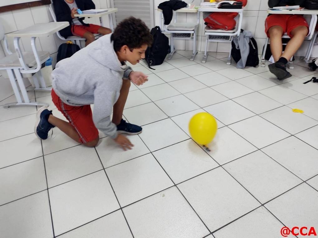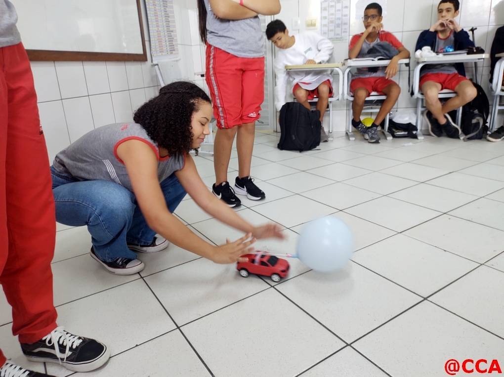 Eles foram desafiados a construírem um carrinho movido a jato de ar, utilizando o princípio de ação e reação da 3° lei de Newton.