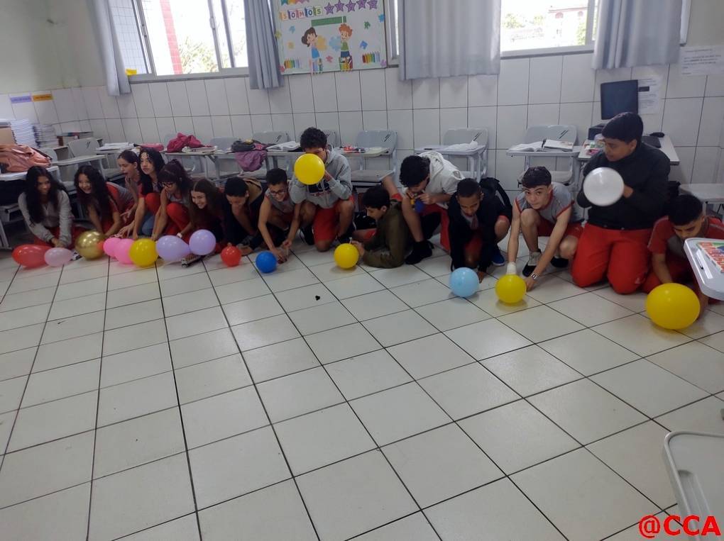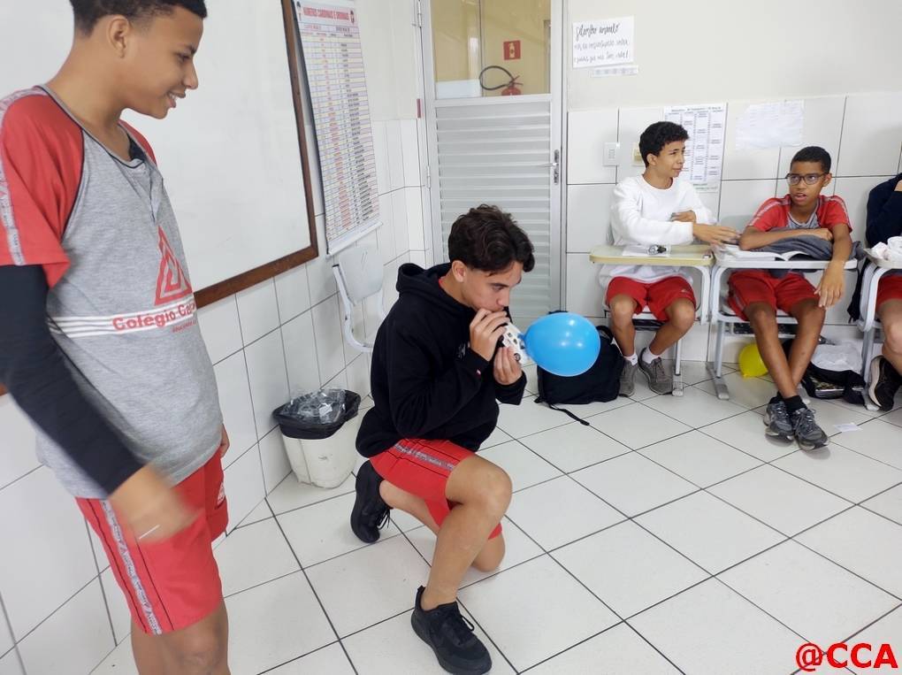 Durante a aula de ciências, os alunos dos 7° anos realizaram experimento sobre as leis de Newton.