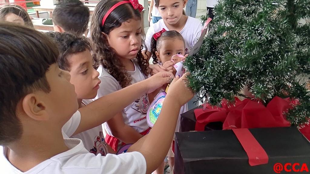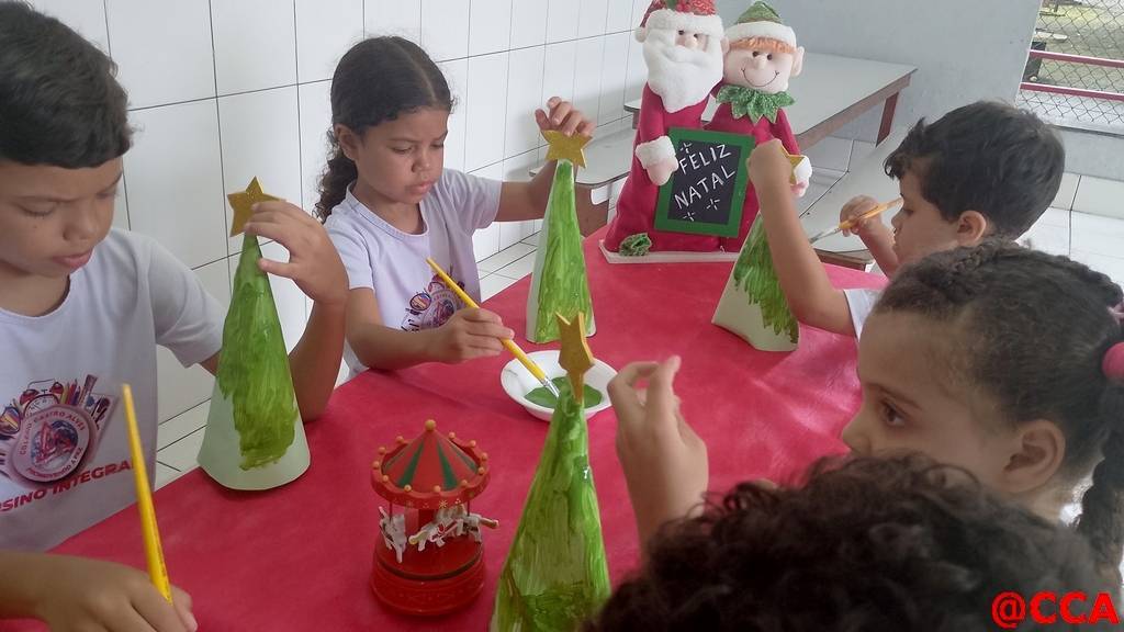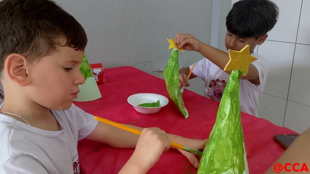 Com muita alegria e mãozinhas criativas, fomos confeccionando nossa árvore de Natal — porque Jesus é a nossa maior alegria e motivo de celebrar. 💛🌟