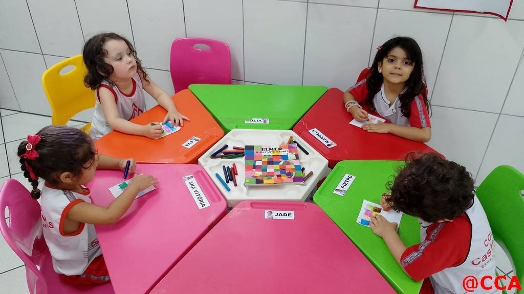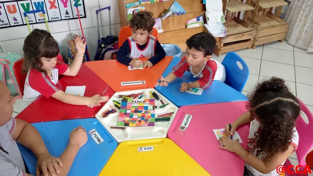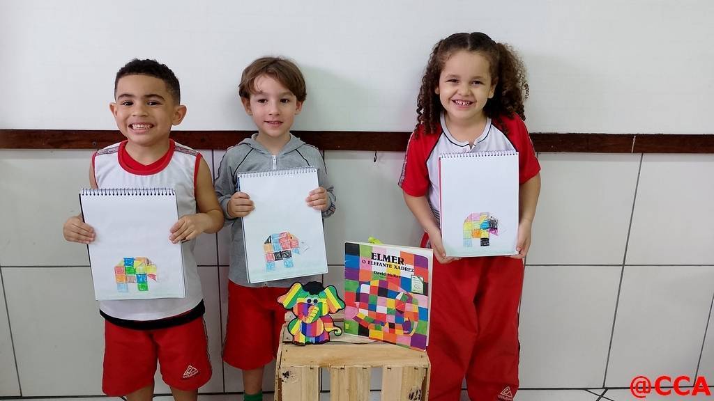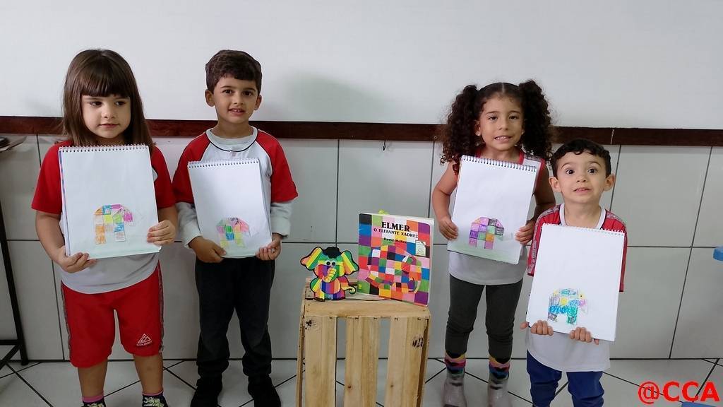 através da história “Elmer, o elefante xadrez”, dialogamos sobre o respeito e o valor de cada um.