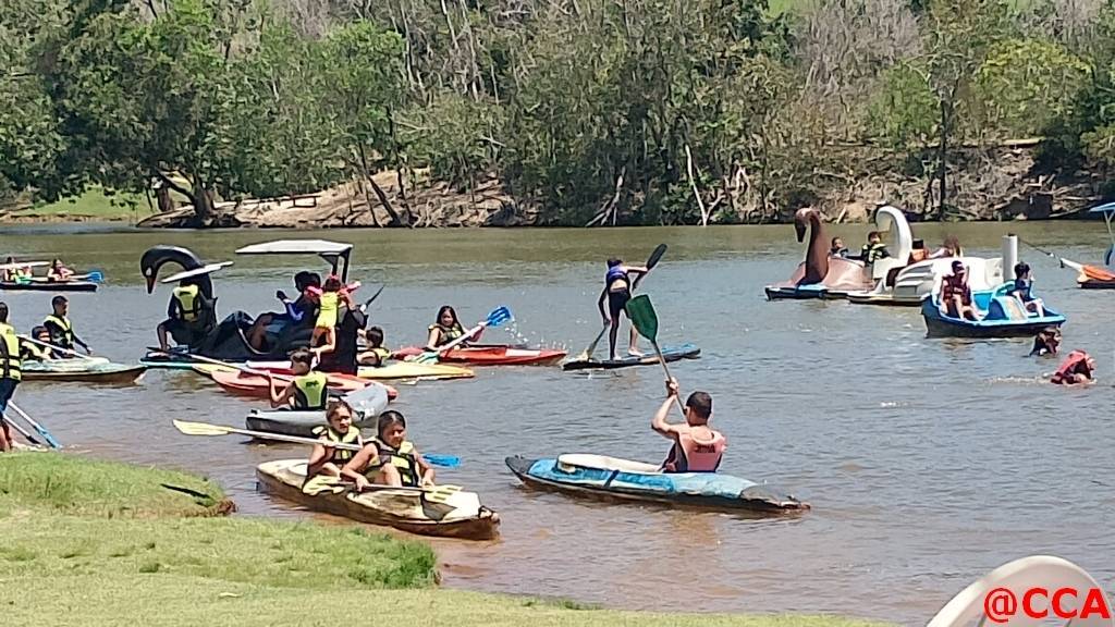 Dia de sol perfeito para curtir as piscinas, remar de caiaque no lago, se divertir na mini fazenda e encher o dia de risadas e brincadeiras sem fim.