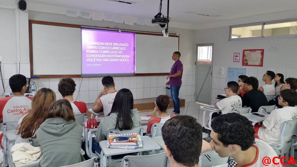 No decorrer da palestra, temas como a construção de uma conta no Linkedin, currículo, preparação para entrevista e boas práticas no ambiente de trabalho, foram abordados de forma dinâmica e assertiva, totalmente conectada com nossos jovens.