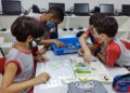 Durante a aula inaugural de Robótica, os (as) alunos (as) aprenderam a identificar e organizar as peças Lego que utilizaremos ao longo do ano letivo. Uma das mais novas ferramentas educacionais, a Robótica estimula o raciocínio, induz a criatividade e desenvolve a organização mental e outras habilidades manuais. Nossos alunos das turmas de 3º, 4º e 5º ano tem como mediadora desse processo a professora Roberta Santos.