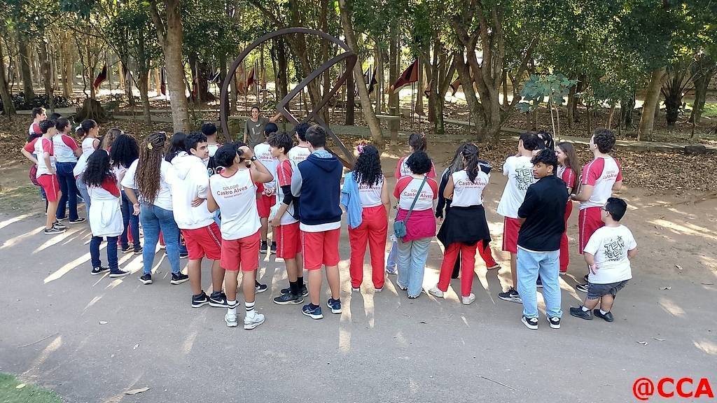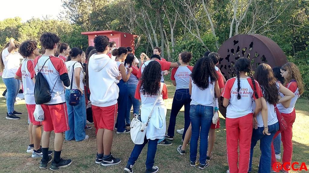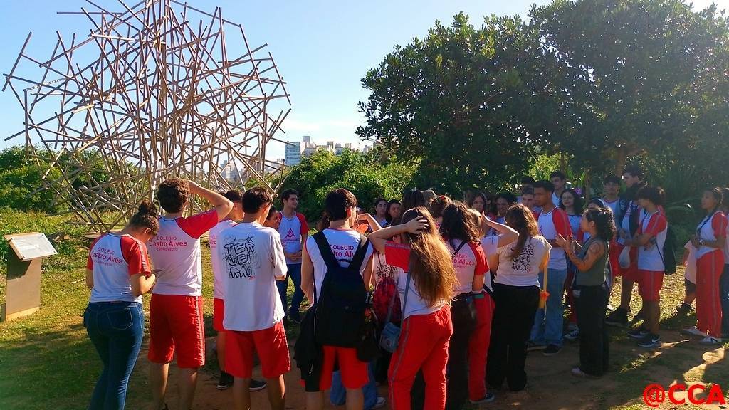 Nossos estudantes do Ensino Médio do Colégio Castro Alves, acompanhados da Profª de Arte Jordana R. Nascimento e do Prof de Filosofia Flávio Gonçalves, viveram uma experiência imersiva no Parque Cultural Casa do Governador que expõe obras de arte contemporânea em meio à natureza.