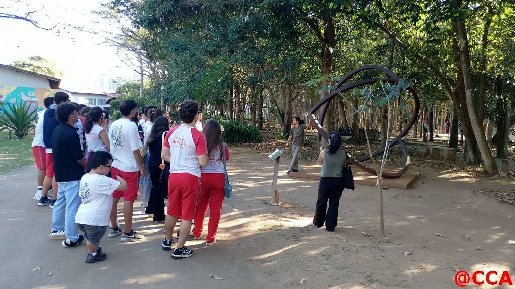 Em uma visita mediada, eles exploraram os espaços do parque enquanto apreciavam e analisavam, em grupo, diversas esculturas e instalações artísticas. O passeio foi uma aula a céu aberto, onde puderam desfrutar de momentos de aprendizagem integrados ao lazer.